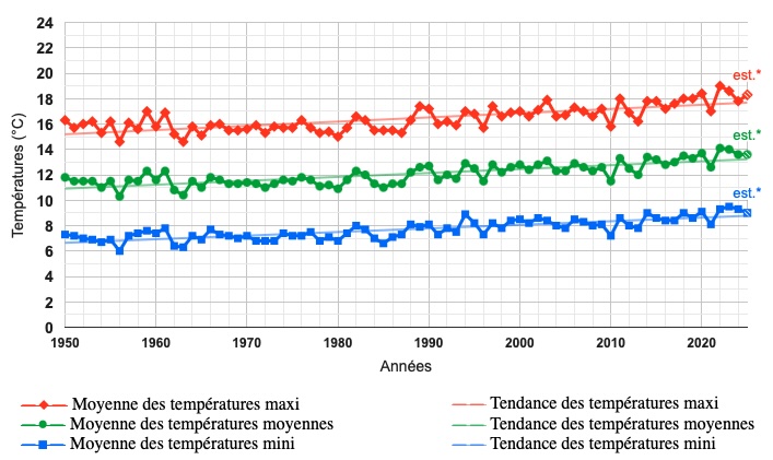 – augmentation moyenne de 0,8°C en France depuis l’an 2000